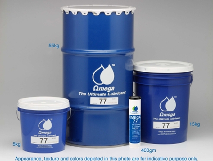 OMEGA 77 จารบีหล่อลื่น เป็นสารหล่อลื่นสำหรับ แบริ่ง รอบจัดและชัซซีที่ทนต่อการกระแทก และแรงเหวี่ยง และแรงสลัดที่ทันสมัยจารบีหล่อลื่น OMEGA 77 ให้มาตรฐานการหล่อลื่นที่พิเศษสุดสำหรับเครื่องจักรกลนานาประเภทที่ใช้ในทุกวันนี้อย่างไม่มีที่สิ้นสุด ส่งผลให้สามารถลดปริมาณการเก็บสต็อกสินค้าคงคลังและลดเวลาที่เครื่องจะต้องหยุดการทำงานลง และลดค่าใช้จ่ายในการซ่อมบำรุงรักษาเครื่องจักรลงได้อย่างมาก