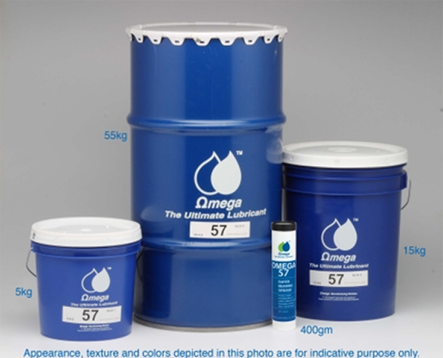 OMEGA 57 เป็นจารบีหล่อลื่นสำหรับ แบริ่ง ที่ใช้งานหนักที่ต้องรับแรงกดสูงมาก และทนน้ำพร้อมด้วยคุณลักษณะที่ทนต่อการสึกหรอได้เป็นอย่างดี OMEGA 57 ประกอบด้วยสารที่เพิ่มการต้านทานแรงกดกระแทกสูง จารบีหล่อลื่นที่พิเศษนี้จะแก้ปัญหาของล้อแบริ่งร้อน และอยู่ในสภาวะการใช้งานที่หนักที่มีน้ำ และความชื้นที่รุนแรง สารเติมแต่งเมกาไลท์ เป็นสูตรเฉพาะของ OMEGA ( OMEGA Megalite ) ที่ใส่ลงไปใน OMEGA 57 จะช่วยหล่อลื่น และยืดอายุการใช้งานของแบริ่งของเครื่องจักร และอุปกรณ์ที่ใช้สารหล่อลื่นนี้จะทำให้อุณหภูมิ ที่ชิ้นงานเย็นลงด้วยเหตุนี้ซึ่งจะเป็นการป้องกันการหยุดงานของเครื่องจักร